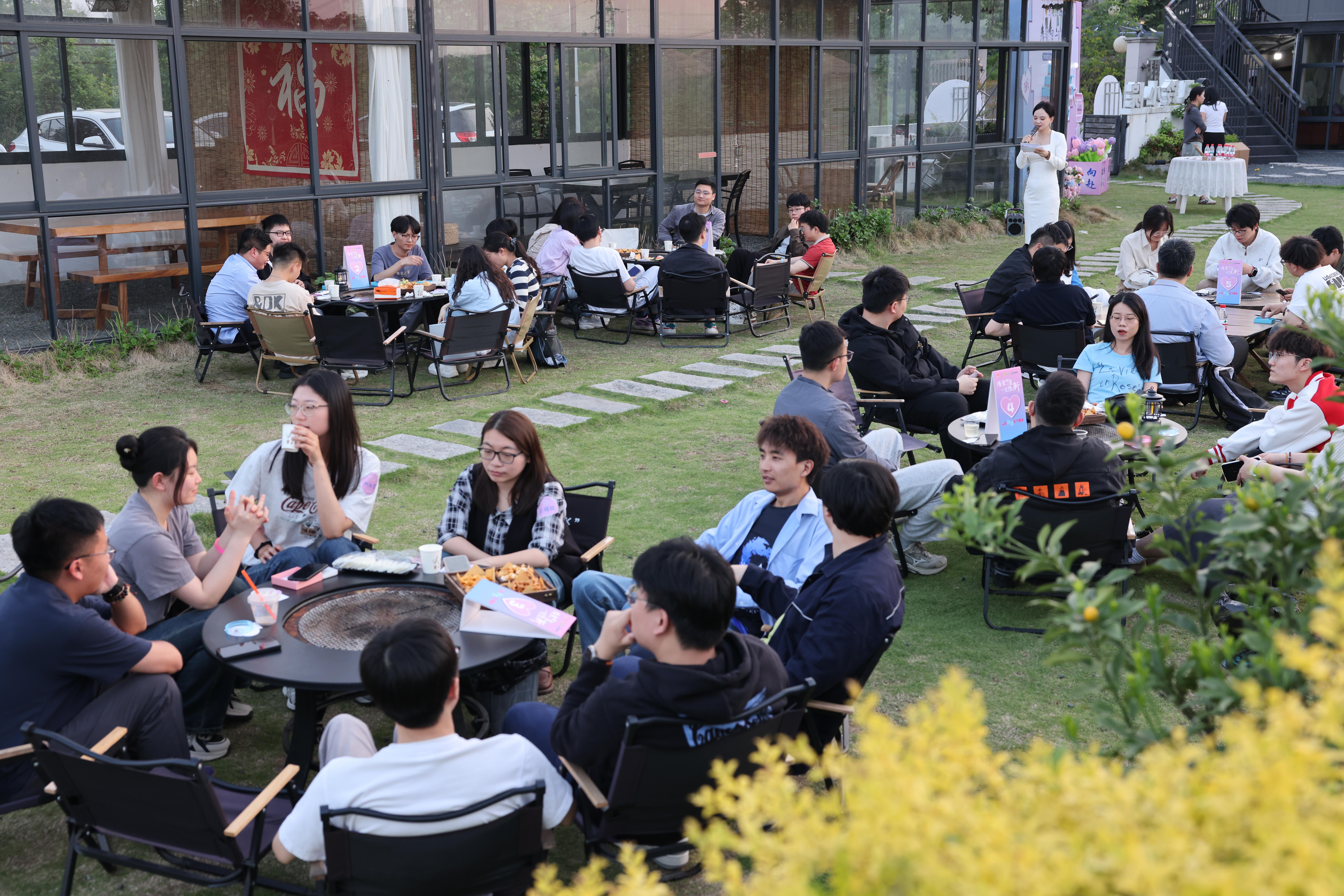 4月18日晚,,,,,,,当都会徐徐亮起灯火,,,,,,,新昌风铃小院开启了一场星空下的浪漫邂逅。。。。。。由七星街道团工委、街道总工会团结非凡国际配合打造的青春派对——“缘聚七星 一见倾'新'”,,,,,,,让40颗心在新昌的夜空下悄然靠近!