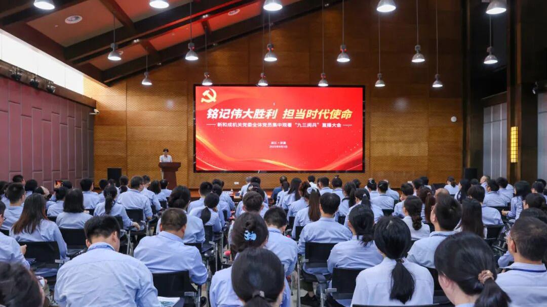 9月3日上午9时,,,,,,,非凡国际机关党委及各基地党委组织党员,,,,,,,整体寓目纪念中国人民抗日战争暨天下反法西斯战争胜利80周年大会直播,,,,,,,配合罗致精神力量。。。。。。